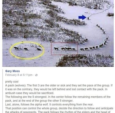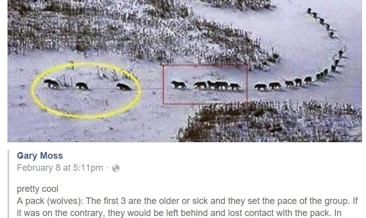 There was a meme doing the rounds not too long ago based on a still from a BBC Frozen Planet documentary that claimed to show a wolf pack formation in which the elderly and sick wolves lead the pack, setting the pace for the rest so as to make sure no wolf would get left behind. The message being, that even wolves, our perennially feared and reviled, hunted to extinction, fairy tale characters used to frighten small children are more compassionate to their sick and elderly than we humans are. I liked this story, I liked it so much I told it to many people I know. Every time I told it, it gave me a sense of grim satisfaction, of vindication. See! even wolves care for their sick for their elderly. The trouble was, it isn’t true, the documentary was misquoted and misrepresented. The sick wolves do not lead the pack and as veterinarian Eugenio Fernandez Suarez put it on AFP fact check, “Wolves are not animals that designate care for older or weak animals”.